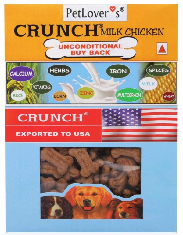- Recommended Use: Pet Lovers Crunch Milk Chicken Flavour Biscuits are designed as a treat or supplement to your dog’s regular diet.